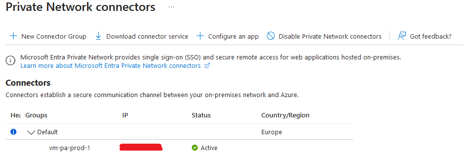 - Asensimme palvelimeen Microsoft Entra private network connector -palvelun